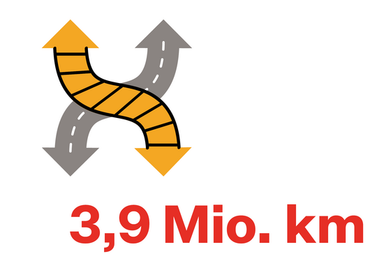 2024 wurde durchschnittlich 3,49 Kilometer weit gereist.